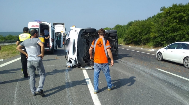 TEM Otoyolu Sakarya kesiminde meydana gelen trafik kazasında sürücüsünün direksiyon hakimiyetini kaybettiği midibüs devrildi. Kazada 2 kişi yaralandı.