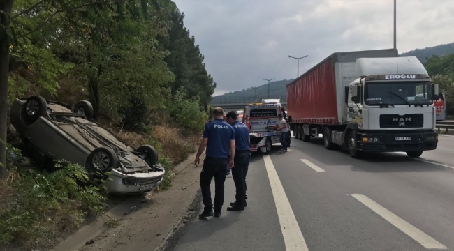 Kaza, tem otoyolu Sapanca İlçesi gişeleri mevkiinde meydana geldi. Edinilen bilgilere göre, Şükran K., idaresindeki 34 JE ... plakalı otomobil, sürücüsünün direksiyon hakimiyetini kaybetmesi sonrasında yol kenarına devrildi. Meydana gelen trafik kazasında otomobilde yolcu olarak bulunan Abdülkadir K., yaralandı. Durumun bildirilmesi üzerine olay yerine hemen sağlık ekipleri çağrıldı.