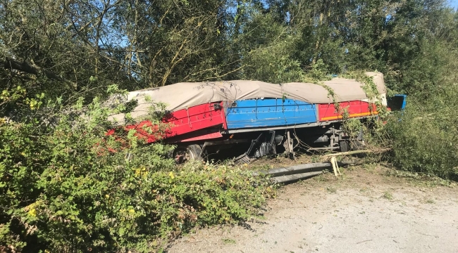 Kaza, saat 16.30 sıralarında TEM Otoyolu Alancuma mevkiinde meydana geldi. Edinilen bilgiye göre, Ankara istikametinden İstanbul istikametine gitmekte olan Emin B. idaresindeki 78 DD ... plakalı tır, önünde seyir halinde olan Erkan B. idaresindeki 34 RT .... plakalı otomobili sollamak isterken yandan çarptı. Çarpışmanın etkisiyle direksiyon hakimiyetini kaybeden tır sürücüsü, bariyerlerden yol kenarında bulunan kanala uçtu. Meydana gelen kaza sonucu ağaçlara çarparak durabilen tır sürücüsü Emin B. ile otomobil sürücüsü Erkan B. yaralandı.