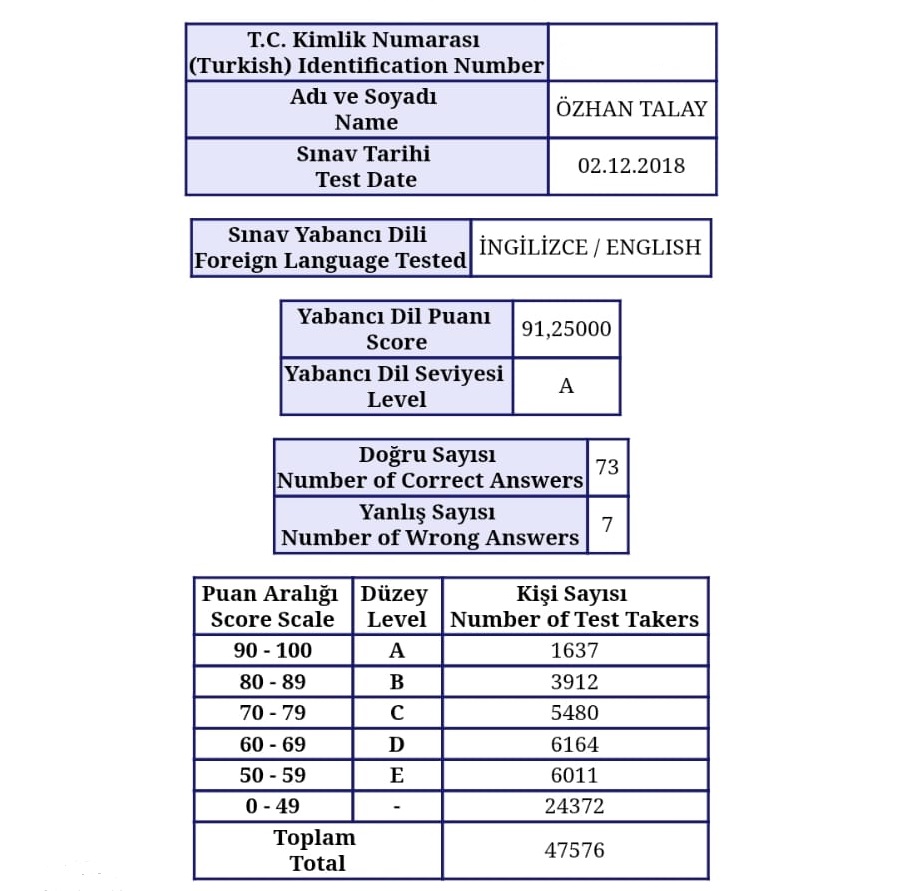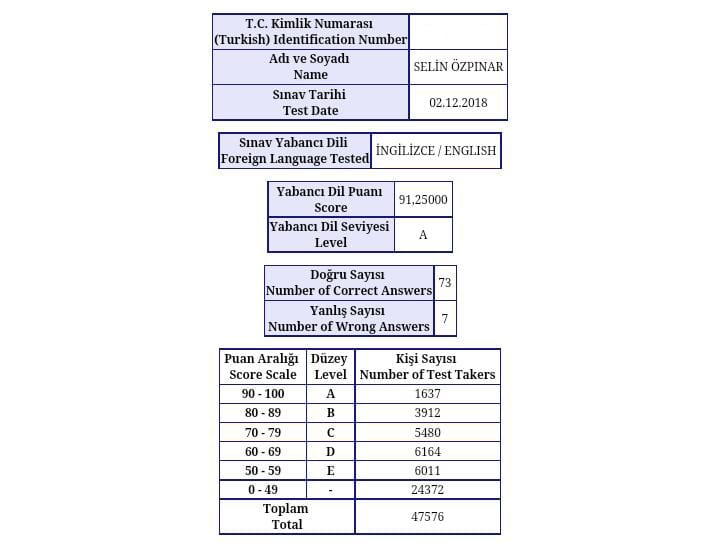 Tes-İş Adapazarı anadolu lisesi İngilizce Öğretmeni Nurullah ÖKTEM bu konuyla ilgili şunları aktardı: "Türkiye’nin en iyi üniversitelerini hedefleyen öğrencilerimiz gerçek sınavlarına girmeden önce YDS ile kendilerini sınadılar. Türkiye’de ÖSYM tarafından düzenlenen ve en ileri düzey akademik sınav olarak bilinen YDS’ye okulumuzun 14 kişilik 12. Sınıf (Dil Bölümü) öğrencilerinden 10 kişi ve bir de 11. Sınıf (Dil Bölümü) öğrencimiz katıldı. Birçok adayın aylarca özel kurumlarda test tekniği almasına rağmen ulaşamadığı puanlara liseli gençlerimiz sadece okulda aldıkları eğitimle ulaşmayı başardılar. " Sınava giren en genç adaylar arasında yer alan Sakaryalı gençler hem şehrimizin hem de Tes-İş Adapazarı Anadolu Lisesi’nin gurur kaynağı oldular. İşte elde edilen neticelerden bir kısmı: