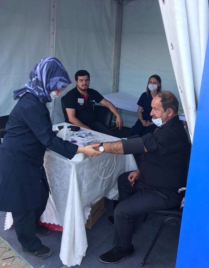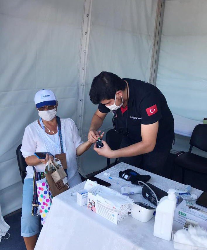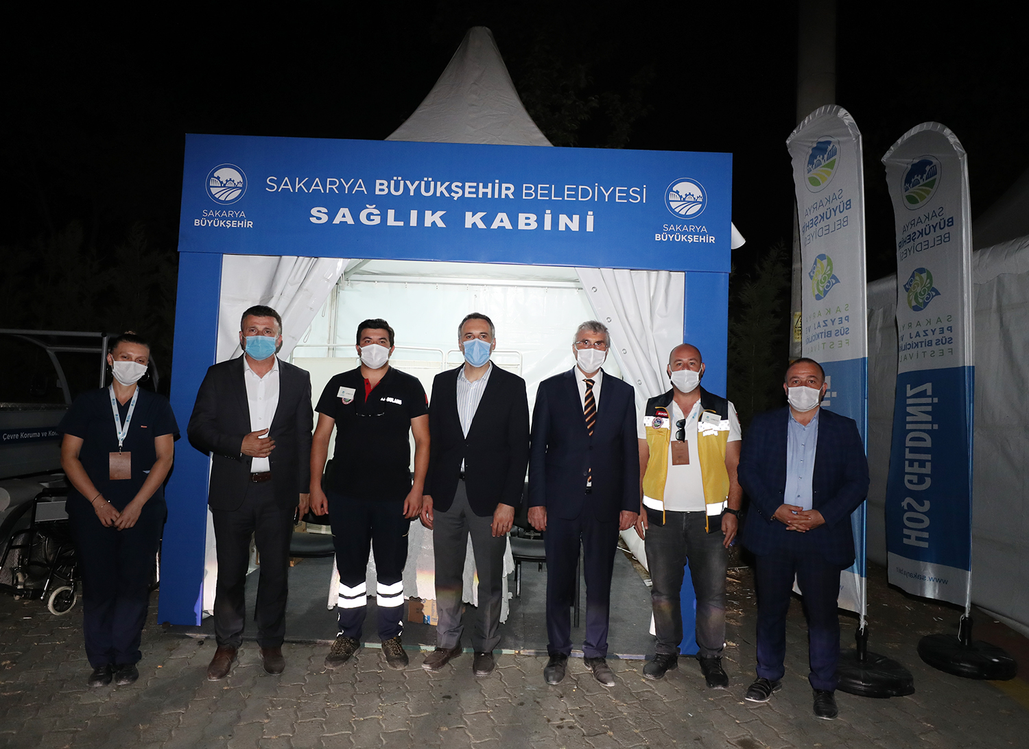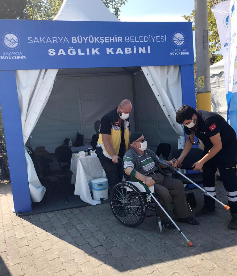 Sakarya Büyükşehir Belediyesi tarafından gerçekleştirilen organizasyonlarda Tıp Merkezi marifetiyle uygulanan sağlık tedbirleri dikkat çekiyor. Son olarak 16-19 Eylül tarihleri arasında Sapanca Kırkpınar’da gerçekleştirilen peyzaj ve süs bitkiciliği Festivali’nde Sağlık İşleri Dairesi Başkanlığı tarafından yaklaşık 200 vatandaşa tıbbi müdahalede bulunuldu. Oluşturulan sağlık kabini ile pansuman, kan basıncı ölçümü, kan şekeri ölçümünün yanı sıra festival alanına girişlerde ateş ölçümü de yapıldı. Festival boyunca 3 bin maske ile bin 500 dezenfektan katılımcılara dağıtıldı. 4 tıbbi personel, 1 hasta nakil araçla festival alanında hazır bulunan Tıp Merkezi’nin sahra hastanesi anlayışıyla sunduğu hizmetten çok önemli olduğunu ifade eden festival katılımcıları, sektör temsilcileri ve ziyarete gelen vatandaşlar sağlık tedbirlerinin titizlikle uygulanmasından duyulan memnuniyeti dile getirdi.