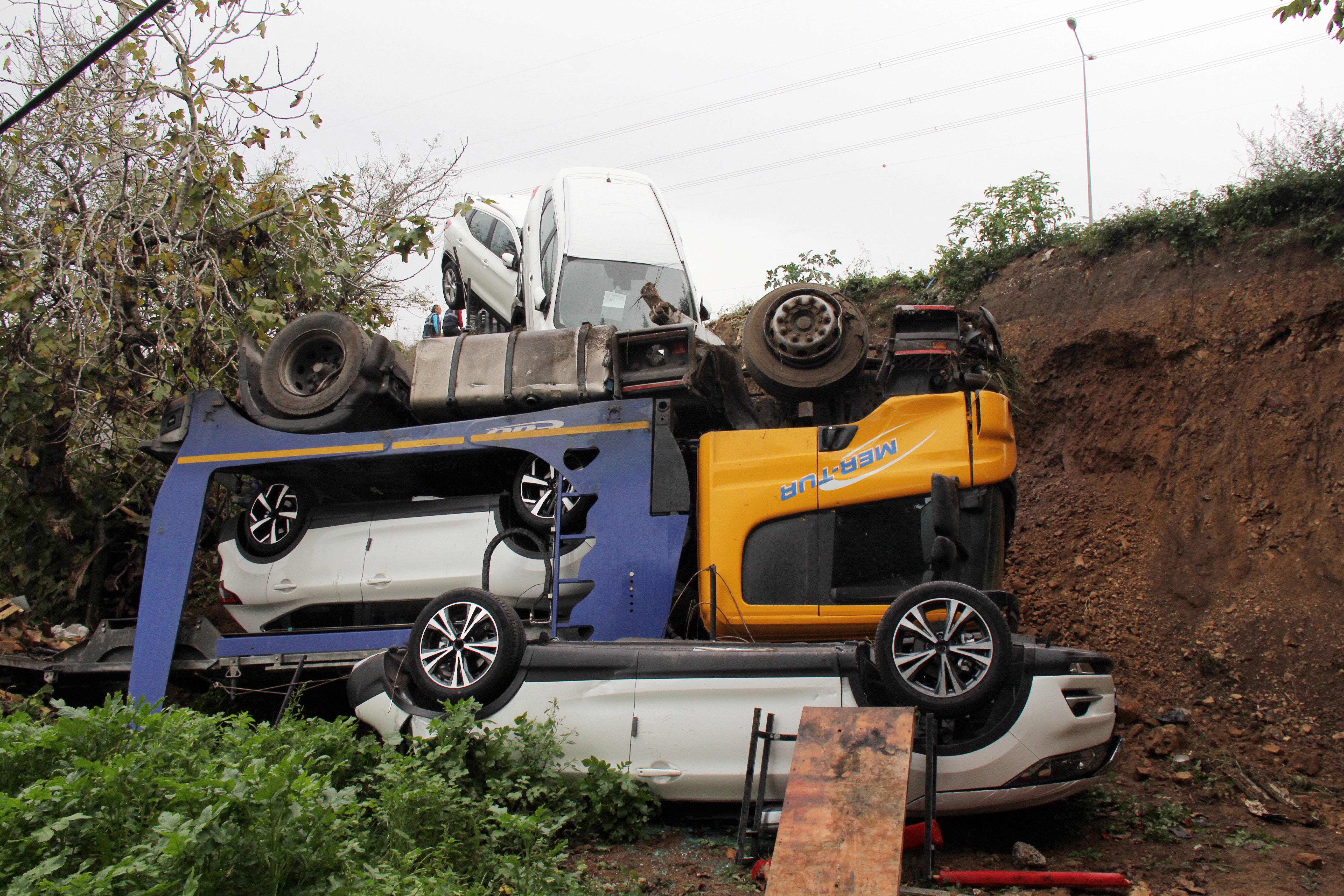Tır şarampole devrildi sıfır cipler hurdaya döndü