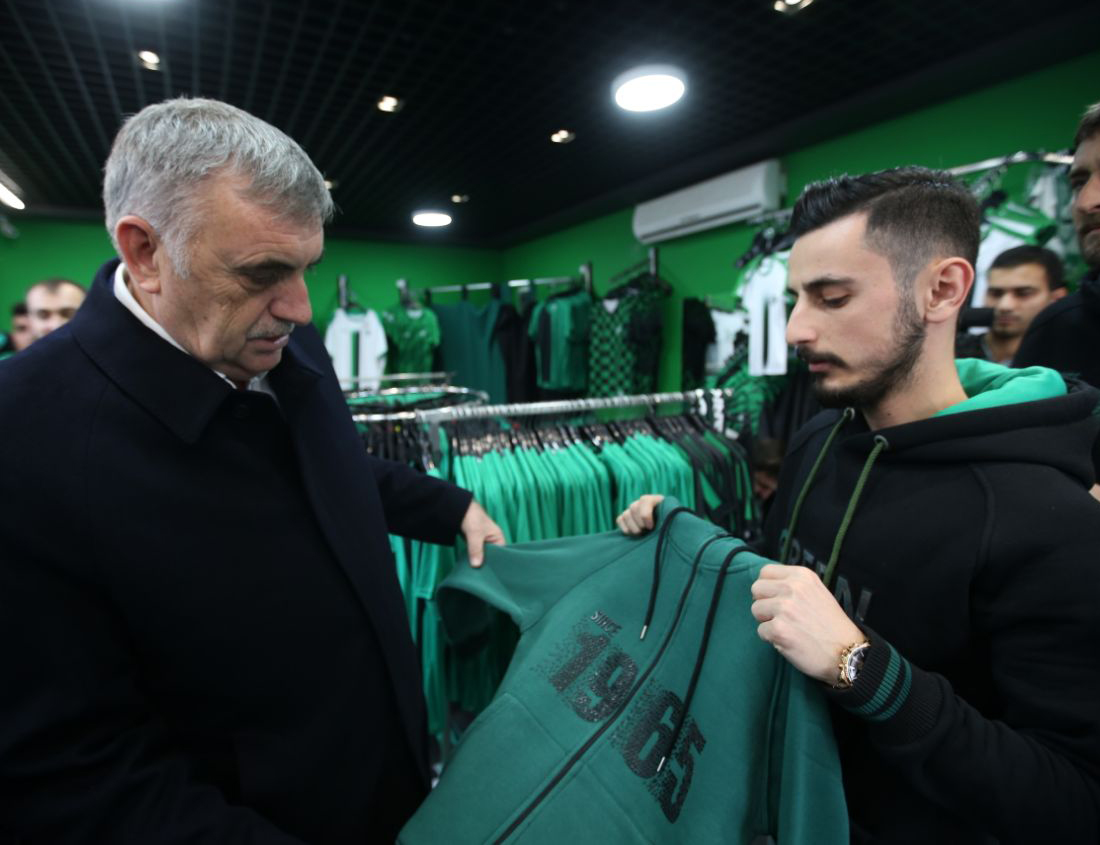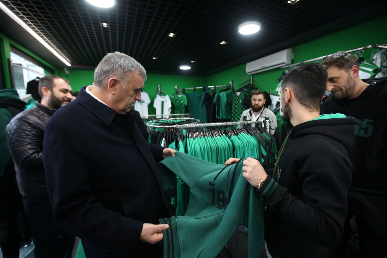 Sakaryaspor’un lisanslı ürünlerinin satıldığı Dükkan54’ü ziyaret eden Başkan Toçoğlu, tüm taraftarları haftasonu oynanacak Samsunspor karşılaşmasına davet etti. Toçoğlu, “12 haftalık yenilmezlik serisini Samsunspor karşısında da sürdürecek, ilk yarıyı lider tamamlayacağız. Şampiyonluk yoluda emin adımlarla ilerleyen Sakaryasporumuza destek için tüm taraftarlarımızı karşılaşmaya davet ediyorum” dedi. Toçoğlu, Sakaryaspor’un lisanslı ürünlerinden de satın alarak takıma olan desteğini yineledi.