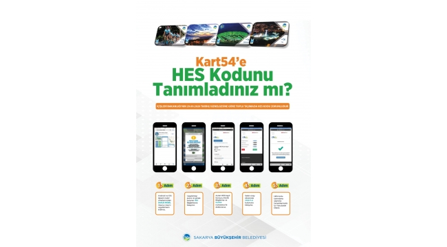 Kart54’lerine HES kodunu nasıl tanımlayacaklarına yönelik paylaşılan bilgilerde ise, “SAKUS Mobil, Sakarya Ulaşım Mobil uygulamaları üzerinden aynı zamanda sakarya.bel.tr adresinde bulunan HES KODU TANIMLA linke tıklayarak HES Kodu Kayıt Formuna ulaşabilir ve tanımlama işlemini gerçekleştirebilirsiniz. Kayıt formunda T.C Kimlik No, Ulaşım Kart Numarası, HES Kodu, Telefon Numarası ve E-mail gibi bilgilerin girilmesi gerekmektedir. Kart54 numaralarını bilmeyen vatandaşlarımız ise Kart54 Kişiselleştirme Ofislerinden, dolum fişlerinden ve yine aynı yönlendirme linkinde yer alan Ulaşım Kart Numarası Sorgulama Formunu doldurarak Kart54 numaralarını kolayca öğrenebilirler. Kişiselleştirilmemiş Tam Kart sahiplerinin ise Kart54 ofislerine gitmeleri gerekmektedir. 15 Şubat tarihine kadar vatandaşlarımızın Kart54’lerine HES Kodu tanımlamaları gerekmektedir. Kart54’üne HES Kodu tanımlı olmayan yolcularımız seyahat edemeyeceklerdir. HES Kodu tanımlama işlemleri hakkında detaylı bilgi edinmek için ALO 153-1 numaralı hattan Ulaşım Yönetim Merkezine ulaşabilirsiniz” açıklamalarına yer verildi.