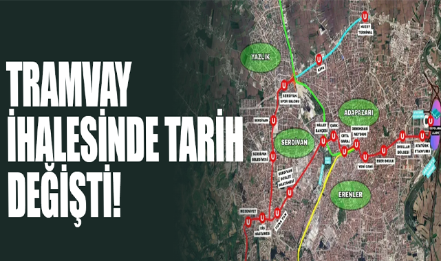 Sakarya Büyükşehir Belediyesi tarafından Adapazarı ile Serdivan arasına yapılacak olan dev tramvay projesinde yeni bir gelişme yaşandı. 24 Nisan Cuma günü yapılacağı açıklanan büyük ihale, teknik şartnamedeki güncellemeler nedeniyle 28 Nisan Salı gününe alındı.