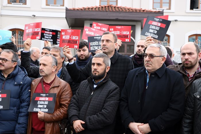 Amerika Birleşik Devletleri Başkanı Donald Trump’ın Kudüs’ü İsrail’in başkenti olarak tanıyacağına yönelik iddialara tüm dünyadan büyük tepkiler yağarken, TÜGVA sakarya İl Temsilciliği de bu sözlere karşı bir basın açıklaması yaptı.