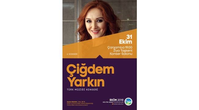 Sakarya Büyükşehir Belediyesi Ekim Kültür Sanat Etkinlikleri Çiğdem Yarkın’ın Türk Müziği Konseri ile sona erecek. 31 Ekim Çarşamba günü Ziya Taşkent Konser Salonu’nda gerçekleştirilecek olan ve biletleri günler öncesinden tükenen konser saat 19.00’da başlayacak.Biletlere yoğun ilgi gösteren tüm sanatseverlere teşekkür eden Kültür ve Sanat Şube Müdürü Adem Turan, “18. Uluslararası Sapanca Şiir Akşamları ile başlayan Ekim Kültür Sanat Etkinliklerimiz Çiğdem Yarkın’ın sahne alacağı Türk Müziği Konseri ile sona erecek. İnşallah Kasım ayında da birbirinden farklı etkinlikleri hemşehrilerimizle buluşturacağız” dedi.