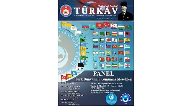 Türkiye Kamu Çalışanları Vakfı sakarya Şubesi tarafından 2 Mart 2019 cumartesi günü saat 19.30 da Türk Dünyasının günümüz meseleleri isimli panel düzenlenecek. Panele konuşmacı olarak MHP Genel Başkan Yardımcısı Prof.Dr Kamil Aydın, Prof.Dr Haluk Selvi, Prof.Dr İlyas Topsakal katılacak. Panele konuşmacı olarak katılan konuklar, Hocalı Katliamının yıl dönümünde, Türk Dünyasının uğradığı zulüm ve haksızlıklar hakkında bilgi vererek, farkındalık oluşturacaklar, Türkiye Kamu Çalışanları Vakfı Genel Başkanı Ebubekir Korkmaz’ında konuk olarak katılacağı panel öncesinde saat 18.00 da Yeni Cami önünden gar meydanına kadar Türk, Kırım, Doğu Türkistan, Azerbaycan, Irak Türkmen bayrakları yürüyüş yapılarak basın açıklamasında bulunulacak.