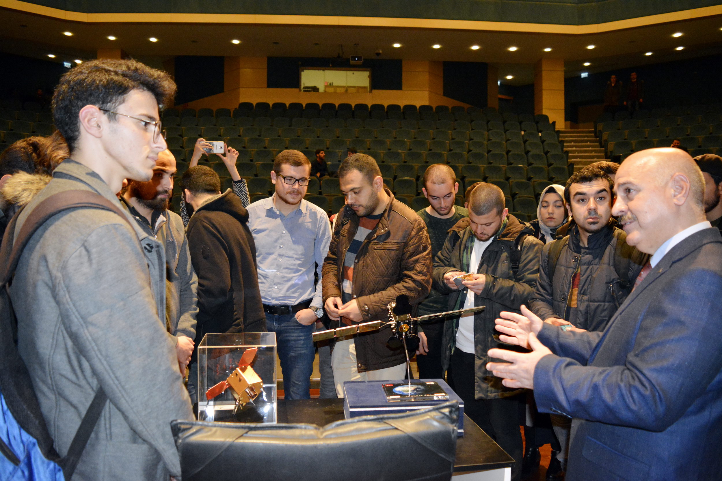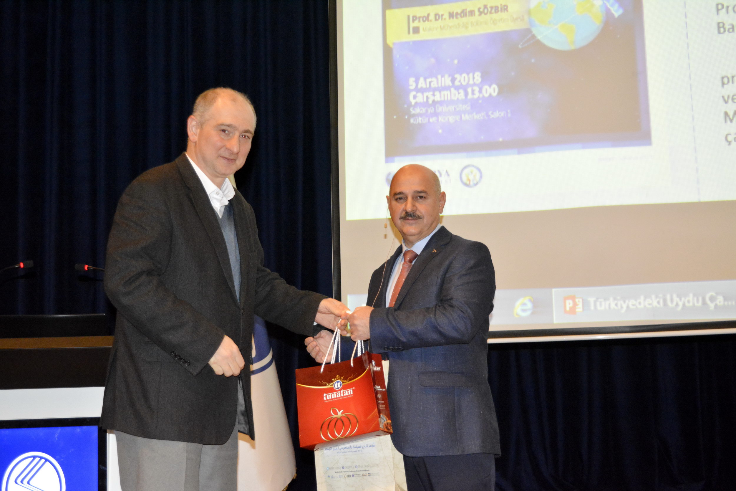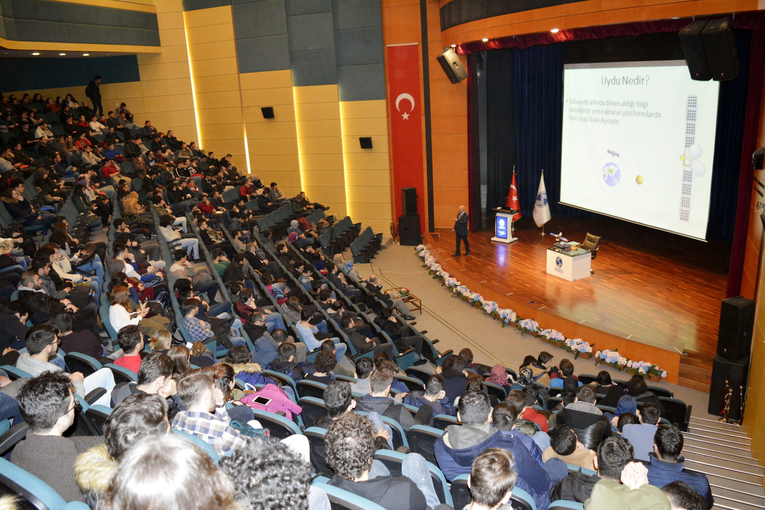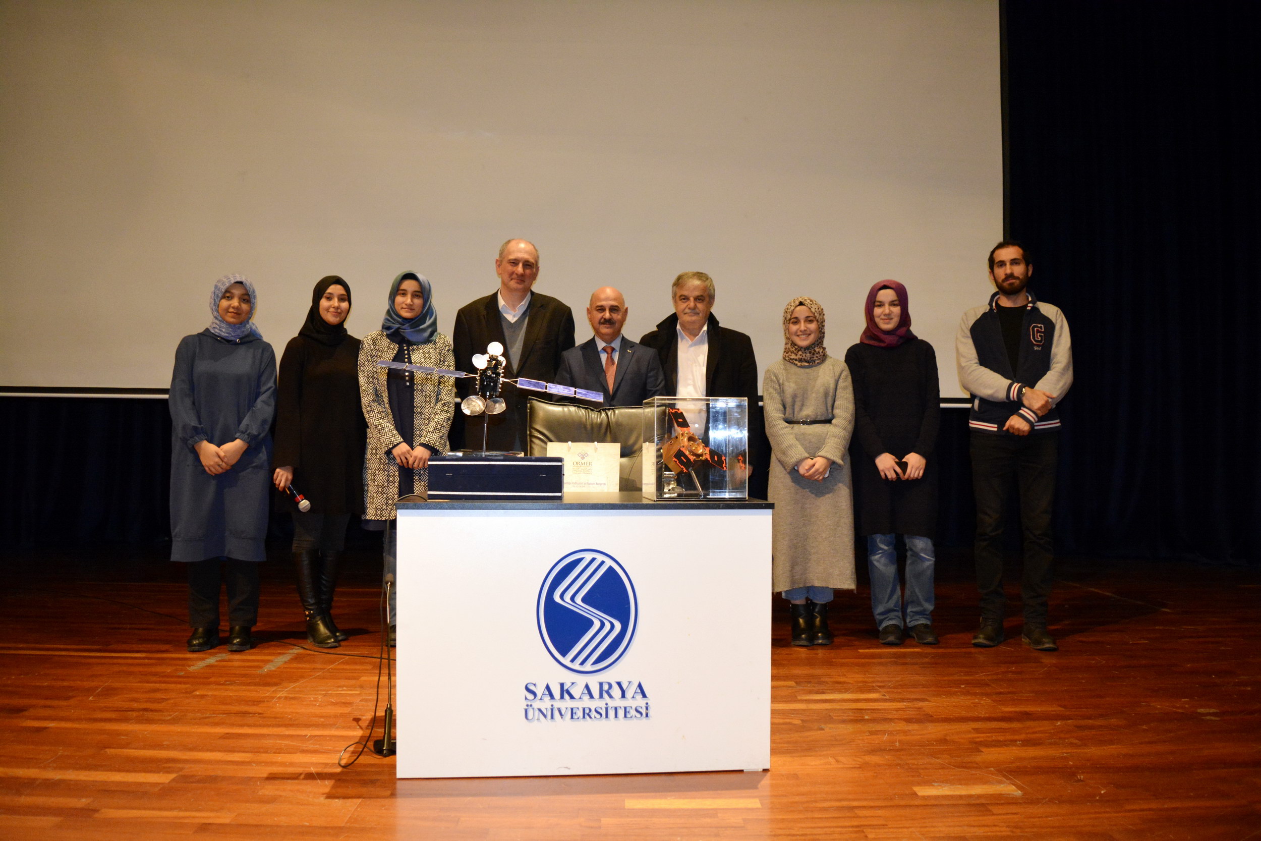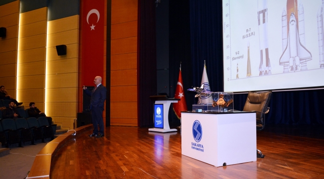 SAÜ Kültür ve Kongre Merkezinde gerçekleşen konferansa Makine Mühendisliği bölümü öğretim üyesi Prof. Dr. Nedim Sözbir konuşmacı olarak katıldı.Konuşmasına uydu üretim süreçlerini anlatarak başlayan Prof. Dr. Nedim Sözbir, uydu üretim sürecinde her parçanın çalışma ömrünün uydunun görev süresi ile uyumlu olması gerektiğinin altını çizdi. Prof. Dr. Sözbir, “Uydular genellikle faydalı yük ve hizmet modülü olarak iki ana alt-sistemden oluşmaktadır. İlk olarak, belirlenen uydu görevine göre faydalı yük modülü tasarlanmalıdır. Bu faydalı yükü taşıyacak hizmet modülü, faydalı yükün ihtiyaç duyacağı elektriksel gücü, sağlam mekanik ve termal yapıyı ve gerekli veri ağını sağlayacak şekilde seçilir ve tasarlanır” dedi.Uydu teknolojilerinin sadece uydu üretim süreçleri olarak ele alınamayacağını söyleyen Sözbir, “Daha önce belirtildiği üzere uydu pazarı, uydu üretimi, fırlatma sistemleri, yer sistemleri ve uydu servisleri gibi alt sektörlere sahiptir. Türkiye, dünya genelindeki uydu servis sağlayıcıları ve uydu üreticileri göz önüne alındığında henüz başlangıç aşamasında görünse de, farklı kurum ve enstitüler tarafından yapılan çalışmalar, en önemli eksiğimiz olan insan ve alt yapı birikimini zaman içinde ortadan kaldıracaktır” diye konuştu.Uydu operatörlerinin çoğunlukla devlet desteği ile kurulduğunu ve yatırımlarının da devlet destekleri ile sağlayan şirketlerden oluştuğunu belirten Sözbir, sözlerini şöyle sürdürdü: “Ülkemizin tek uydu operatörü tÜrksat A.Ş. 2004 yılında Türk Telekom’un özelleştirilmesi sonrasında yasa ile kurulmuştur. Ülkemizde son on yılda hız kazanan uydu ve uzay teknolojilerinin üretilmesi ve entegrasyonu faaliyetleri, sadece ithalat ihracat dengesi açısından değil teknolojik gelişimin ülke genelinde farklı sektörlere yaygınlaştırılması açısından da kilit önem taşımaktadır.”Konferans, Prof. Dr. Nedim Sözbir ile öğrencilerin hatıra fotoğrafı çektirmesiyle son buldu.