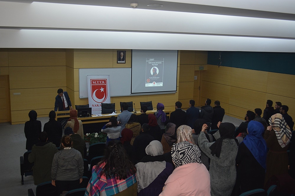 Milli Türk Talebe Birliği (MTTB) sakarya İl Başkanlığınca düzenlenen siyaset akademisi devam ediyor. Akademinin dördüncü programında “Türkiye’nin Ortadoğu Politikası” konulu bir konferans düzenlendi. KADEM Sakarya İl Temsilcisi ve Sakarya Üniversitesi Ortadoğu Enstitüsü Öğretim Görevlisi Fatma Zehra Toçoğlu’nun konuşmacı olduğu programa mttb İl Başkanı Muhammed Talha İbil, İl Başkan Yardımcıları, STK Temsilcileri ve öğrenciler katıldı.“Osmanlı’dan Sonra Ortadoğu’dan Uzaklaştık”Konuşmasına kendini tanıtarak başlayan Zehra Toçoğlu, “Ortadoğu bölgesinin dünya politikasındaki yeri çok önemlidir. Türkiye de bu bölgeye konum olarak yakın olduğu için büyük öneme sahip bir ülke. Türkiye, öncelerinde Ortadoğu politikasını ihmal etmiş ve çok iyi ilişkiler kurmamıştır. Osmanlı Devleti’nin yıkılmasından sonra büyük ölçüde Ortadoğu’dan uzaklaşmış, Amerika ve Batı Devletlerinin tezi doğrultusunda bir yön tutmuş. Kısaca; Türkiye, Osmanlı’dan sonra kendisine yeni bir Ortadoğu politikası çizmiştir” dedi.“Ortadoğu Politikası AK Parti Hükümetiyle Yeniden Dizayn Edildi”Amerika ve Batı Devletlerinin Ortadoğu politikalarına ayak uyduran Türkiye’nin dönem dönem kendi politikasını belirlemeye çalışmış olmasına rağmen geri adım atmak zorunda kaldığını belirten Araştırma Görevlisi Toçoğlu, “2002 yılında AK Parti’nin iktidara gelmesiyle ülkemiz dış politikasını yeniden dizayn etmeye başladı. Komşularla sıfır sorun stratejisini geliştiren Türkiye, hem Ortadoğu’da hem de Avrupa’da kendi politikalarını üretmeye başladı. Bugün Ortadoğu’da Amerika ve Batı’nın tezleri yerine kendi tezlerimizi kullanıyoruz. Türkiye, 16 yılda yaptıklarıyla Ortadoğu’da söz sahibi bir devlet haline geldi” şeklinde konuştu.Konferans sonunda MTTB İl Başkanı Talha İbil tarafından KADEM İl Temsilcisi Fatma Zehra Toçoğlu’na plaket takdimi yapıldı. Siyaset Akademisi, 24 Aralık Pazartesi günü AK Parti Sakarya Milletvekili Çiğdem Erdoğan Atabek’in konuşmacı olacağı “Değişen Türkiye ve Sosyal Devlet” konferansı ile devam edecek.