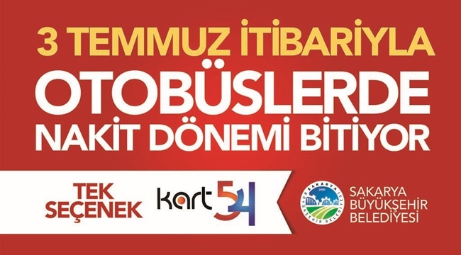 Sakarya Büyükşehir Belediyesi ulaşım Dairesi Başkanı Fatih Pistil, belediye ve özel halk otobüslerinde nakit kullanımının 3 Temmuz Pazartesi günü itibariyle sona ereceğini hatırlattı. Bir süredir şoför kartı uygulamasının sürdürüldüğünü aktaran Pistil, 3 Temmuz Pazartesi günü itibariyle tek geçerli binişlerin kart54 ile yapılacağını kaydetti. Pistil, vatandaşlara Kart54 sahibi olmaları konusunda da hatırlatmalarda bulundu. 3 Temmuz Pazartesi sonFatih Pistil açıklamalarını şu şekilde sonlandırdı: “Ulaştırma, Denizcilik ve Haberleşme Bakanlığı’nın Akıllı Ulaşım Sistemleri kapsamında başlattığı çalışmalar neticesinde kartlı geçişler için bizde harekete geçtik. 1 Mayıs Pazartesi günü itibariyle nakit binişleri kaldırmış, vatandaşlarımızın mağdur olmaması adına şoför kartı uygulamasını sürdürmüştük. İnşallah 3 Temmuz Pazartesi günü itibariyle de tek geçerli uygulama Kart54 olacak. Tüm vatandaşlarımızdan Kart54 sahibi olmaları konusunda duyarlılık bekliyoruz” ifadelerini kullandı.