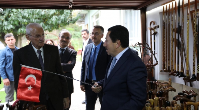 Vali İrfan Balkanlıoğlu, ilimizde el sanatlarının yaşatılması adına eserler üreten 75 yaşındaki yorgancı Hasan Kar ile 88 yaşındaki baston ustası Nihat Çakıner’e ziyarette bulundu.