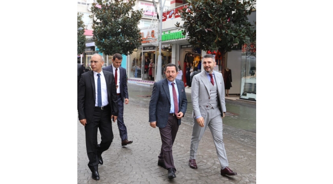 İlk olarak geçtiğimiz günlerde Serdivan ilçesindeki uygulama noktasında bir şüphelinin aracıyla sürüklediği ve ağır yaralı olarak hastaneye kaldırılan Yunus timinde görevli Polis Memuru Günay Doğdu’yu tedavi gördüğü SEAH’ta ziyaret eden Vali Balkanlıoğlu, polis memuru ve ailesine geçmiş olsun dileklerinde bulundu.İl Emniyet Müdürü Fatih Kaya’nın da eşlik ettiği ziyarette, doktorlardan bilgiler alan Vali Balkanlıoğlu, hayati tehlikeyi atlatan polis memuruyla bir süre sohbet etti.Daha sonra Adapazarı ilçesinde bulunan Çark Caddesine geçen Vali Balkanlıoğlu, esnaflara hayırlı ve bol kazançlar dileğinde bulunurken, SBB Başkanı Zeki Toçoğlu, İl Emniyet Müdürü Fatih Kaya, Adapazarı Belediye Başkanı Süleyman Dişli, SESOB Başkanı Hasan Alişan ile birlikte Fikret Ayakkabı mağazasının ikinci şubesinin açılış kurdelesini keserek, ilimizdeki girişimcilerin ekonomiye desteklerini yeni yatırımlarla göstermesinin memnuniyet verici olduğunu ifade etti. Mağazadaki ürünleri inceleyerek firma sahibinden bilgiler alan Vali Balkanlıoğlu, yeni şubenin ilimize ve yatırımcımıza hayırlı olması dileğinde bulundu.Açılış sonrası Hendek ilçesine geçen Vali Balkanlıoğlu, İlçe Emniyet Müdürlüğünü ziyaret ederek, birimlerde görev yapan polis memurları ve personele çalışmalarında başarılar diledi. Güvenlik güçlerimizin ilçenin huzur ve güvenliği için gece-gündüz demeden büyük bir fedakarlıkla görev yaptığını ifade eden Vali Balkanlıoğlu’na, İlçe Emniyet Müdürü de bir brifing verdi.Hendek ilçesindeki Elmacık Su Fabrikasında da incelemelerde bulunup, tesisleri gezerek firma yetkililerinden suyun depolanmasından şişeye girinceye kadarki serüvenine dair bilgiler alan Vali Balkanlıoğlu, modern ve yüksek teknolojili su şişeleme sistemine sahip olan ve çok geniş bir arazi üzerine kurulu 1060 m. rakımdan çıkartılan su ile üretim yapılan tesisleri çok beğendiğini, ilçemize ve ilimize ekonomi ile istihdam anlamında katkısının da önemli olduğunu sözlerine ekledi.Ankara-İstanbul D-100 karayolu Akyazı mevkiinden geçerken yeni faaliyete geçen Doğa Country Club isimli tesiste durarak etrafı gezen Vali Balkanlıoğlu, özellikle yolculuk yapan vatandaşlarımızın yol üzeri durup nefes alabileceği tesisin, yeşilin her tonuna sahip ayrı bir güzelliğe sahip olmasının ilçemize de değer kattığını söyledi.Son olarak Sahil Güvenlik Karadeniz Bölge Komutan Vekili olarak atanan SG. Kıdemli Albay Ahmet Bahadır ve Sahil Güvenlik Batı Karadeniz Grup Komutanı SG. Yarbay Gökmen Gücüyen’i makamında kabul eden Vali Balkanlıoğlu, komutanlara görevlerinde başarılar diledi.