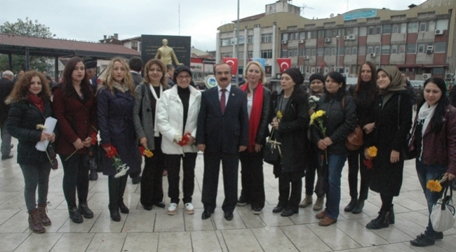 Türk Kadınlar Birliği (TKB) Sakarya Şube Başkanı Tevhide Yağan ve yönetimi Cumhuriyet Bayramı sebebiyle Atatürk anıtına çiçek bıraktı.