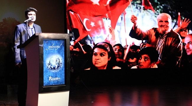 Geceye Aile ve Sosyal Politikalar İl Müdürü Mutlu Işıksu, Kültür ve Turizm İl Müdürü Hüseyin Yorulmaz, AFAD İl Başkanı Hüseyin Kaşkaş, Hizmet-iş sendikası il başkanı Mesut Gökdemir, Kızılay Şube başkanı Zahit Tiryaki ve programda yorumlanan “İhanet Günlüğü” şiirinin şairi Kültür Bakanlığı, Kültür ve Turizm Etkinlikleri daire başkanı Yusuf Şahin’in de aralarından bulunduğu çok sayıda davetli katıldı. Okul velilerinin de yoğun ilgi gösterdiği salonda boş yer kalmadı. “Benliğimizden Uzaklaştık ” Genel müdür yardımcısı Yaşar Şahin; “Mana kargaşasının yoğunluğundan nefes alamadığımız çağımızda; coğrafyamız, iklimimiz, ruhumuz başka bir hal almış durumda. Benliğinden uzaklaşmış bu hal bizi yeni arayışlara itmekte, çare aramaya sevk etmektedir.” “Yeni Kapılar Açmak İçin” “Şiirin şuura tebdil etmesi ile inşa edilen gönüllerimiz ferahlamakta, karmaşık ahvalimizde umut fidanlarını yeşertmektedir. Bizler; kalplerimizin katılığını izale etmek ve fikir dünyamızda yeni kapılar açmak için Yunusların, Niyazi-i Mısrilerin, Sezai Karakoçların seslerine kulak verdik” “İyilikleri çoğaltmalıyız”“Kendimiz olmak, özümüze dönmek, iyilikleri çoğaltmak ve insan yetiştirmek zorundayız. Biliyoruz gönül coğrafyamızdaki milyonlarca kardeşimiz gözlerimizin içine bakıyor, sahip çıkılmayı bekliyor. İslam coğrafyasının bize ihtiyacı var. Çivisi çıkmış dünyanın, bizim topraklarımızda yükselen medeniyetimize yeniden ihtiyacı var” dedi. Büyük Şairler, Unutulmaz şiirlerProgramın başlaması birlikte Necip Fazıl Kısakürek’ten, Erdem Beyazıt’a, Mehmet Akif Ersoy’dan İsmet özel’e kadar Edebiyatımıza eşsiz eserler kazandıran şairlerimizin unutulmayan ve hafızalarımıza kazınan en güzel şiirleri öğrenciler tarafından yorumlandı. Darbe Şiiri Gecenin En Dikkat Çekeniydi15 Temmuz darbe girişimini konu alan şair Yusuf Şahin’in ‘İhanet Günlüğü’ isimli şiiri gecenin en dikkat çeken şiiriydi. 10. Sınıf öğrencisi Ahmet Bedirhan Yılmaz’ın yorumladığı O geceye ait görsellerinde yansıtıldığı şiir izleyenlerden büyük alkış aldı. Şiirin akabinde kısa bir selamlama konuşması yapan Yusuf Şahin’e İl Kültür ve Turizm Müdürü tarafından adabilim okulları adına plaket takdim edildi. Halep Şiirinde Duygusal Anlar!Programın ilerleyen dakikalarında 9. Sınıf öğrencisi Hilal Fener’in Ali Ural’a ait ‘Halep Oradaysa’ şiirini yorumladığı anlarda izleyenler duygulu anlar yaşadı. Ayrıca Ahmet Arif’e ait ‘Akşam erken iner mahpushaneye” şiirini öğrenciler tiyatro gösterisi eşliğinde okuyarak geceye farklılık kattı. Beni Hor Görme Gardaşım…Şiir dolu gecede zaman zaman türkülerde söylendi. Üyelerinin tamamının öğrencilerden oluşan orkestranın başarı ile icra ettiği eserlere yine öğrencilerden oluşan solistler eşlik etti. Ülkemizin sıkıntılı günlerden geçtiği bir zaman dilinde Adabilim okulları bu görüntüsüyle birlik ve beraberliğin en güzel örneğini sergilemiş oldular. Ankara’dan programa geldiYedincioğul şiir akşamlarında gecenin en önemli şiirlerinden olan ‘İhanet Günlüğü’ şiirinin yazarı şair Yusuf Şahin Ankara’dan programa katılarak ‘İçlenmeler’ ve ‘Sukut Dersleri’ isimli şiir kitaplarını program öncesi ve sonrasında davetliler için imzaladı. Nasıl olsa geç başlar!Adabilim Okulları adet haline getirdiği bir uygulamayı bu program için de sürdürdü. Alışılmışın aksine programın başlama saati önceki programlarda olduğu gibi küsuratlı bir saat dilimi 19:54 olarak belirlendi. Okulun idarecileri bu uygulamadaki amaçlarının vakit disiplinine dikkat çekmek olduğunu o günden bu yana da velilerin ve davetlilerin artık programa yarım saat kala salonu doldurmaya başladıklarını belirtti. Yedincioğul ismi nereden geliyor?Adabilim okulları yedincioğul şiir akşamları isminin ilham kaynağı Sezai Karakoç’un Masal adlı şiiridir. Adabilim okulları o şiirde geçen yedincioğul’u temsil eder. Ve o yedincioğul şöyle seslenir;…Batılılar !Bilmeden Altı oğlunu yuttuğunuz Bir babanın yedinci oğluyum ben Gömülmek istiyorum buraya hiç değişmeden … Dikkatle takip ettilerYaklaşık 2,5 saat süren program boyunca seyirciler dikkatle şiirleri dinledi ve zaman zaman söylenen türkülere eşlik ettiler. Velilerin ve misafirlerin büyük beğenisi kazanan program toplu hatıra fotoğraflarının çekilmesi ile son buldu.