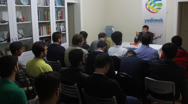 Yedirenk Uluslararası Öğrenci Derneğinde her hafta onlarca ülkeden misafir öğrenci Yedirenk Sohbetleri adıyla ahlak ve maneviyat dersleri yapıyor.
