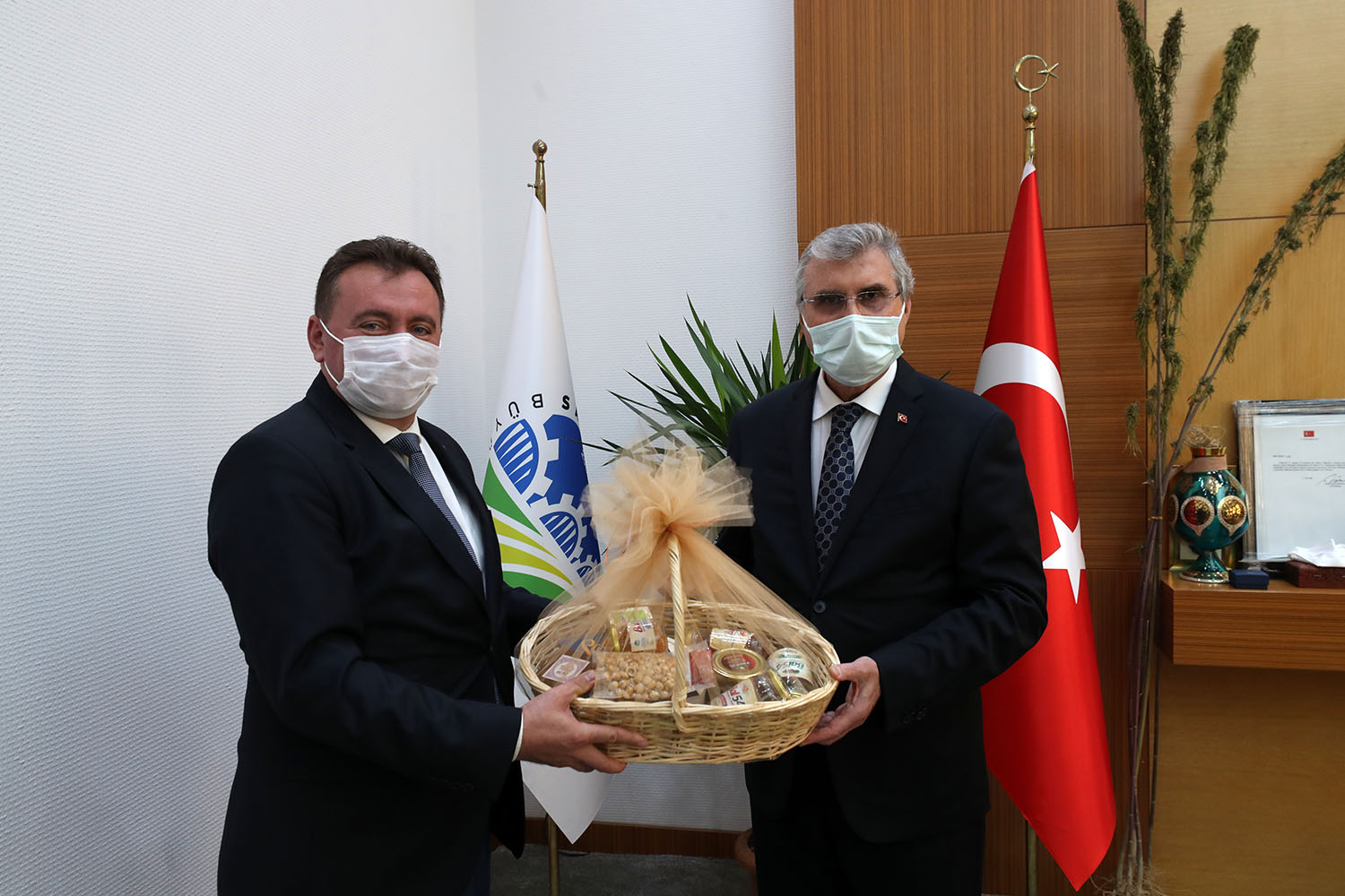 Büyükşehir Belediye Başkanı Ekrem Yüce, Ferizli Belediye Başkanı İsmail Gündoğdu ve beraberindeki heyet ile bir araya geldi.