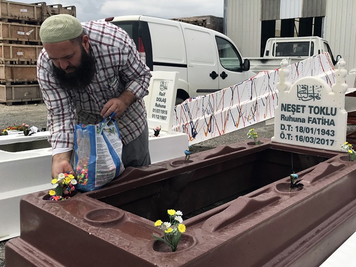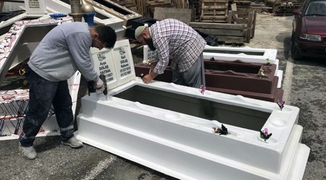 Polyester mezar işini 1 yıldır yaptığını söyleyen Gazi Özaydın isimli vatandaş, insanların polyester mezarları görmeye başladıkça kendilerine gelen siparişlerin artmaya başladığını söyledi. 1 sene içerisinde yaklaşık 150 tane polyester mezar yaparak montaj ettiklerini ifade eden Özaydın, son zamanlarda polyester mezara rağbetin arttığını belirtti. Özaydın, "Fiberglass yani polyester mezar yapıyoruz. Polyester mezar renk seçeneği daha fazla olan, ömrü uzun olan, yazı sistemi kaybolmayan yeni nesil bir mezar sistemi. Yekpare gövde mezarın üzerine ağırlık yapmaz, toprağı çökertmez" dedi.