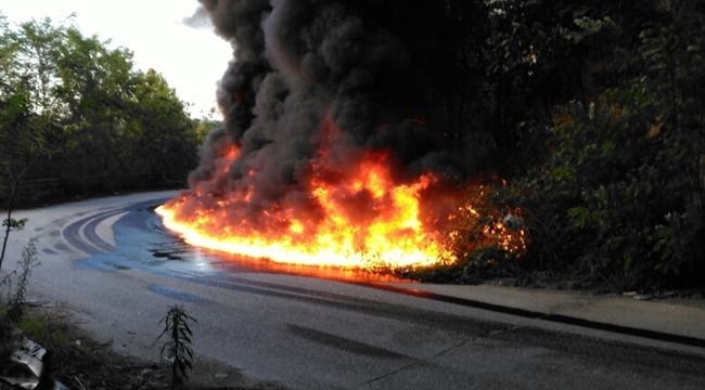 Yola Dökülen Asfalt Zifti Kimliği Belirsiz Kişilerce Ateşe Verildi