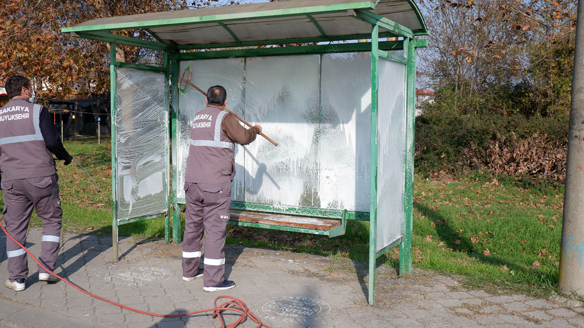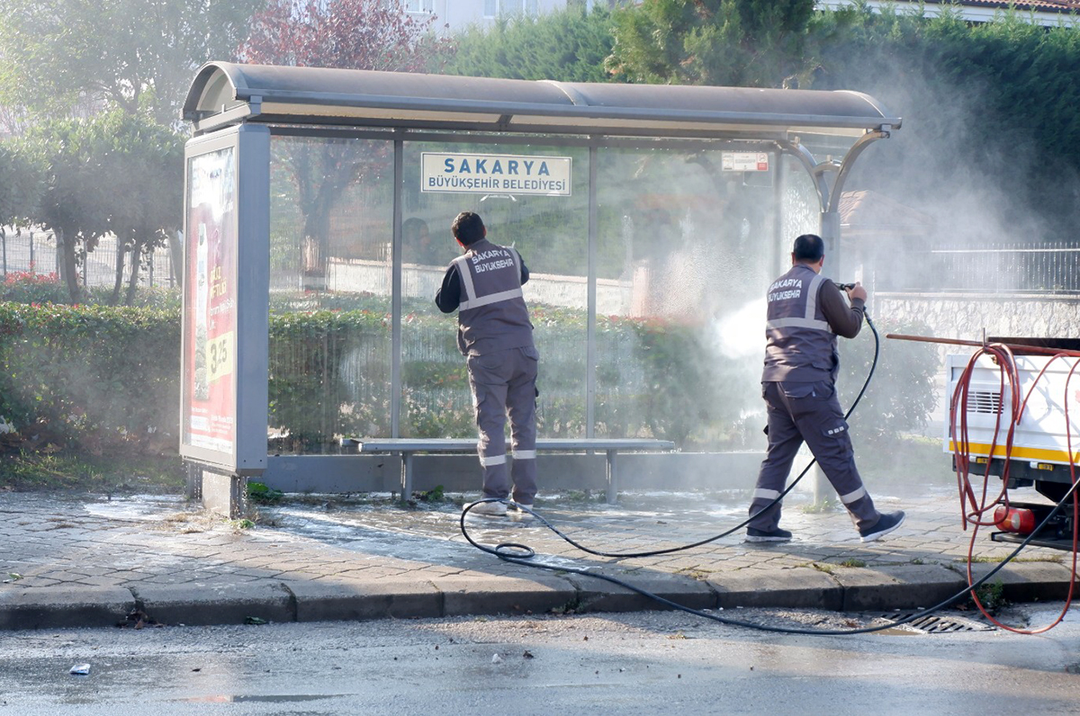 Sakarya büyükşehir belediyesi koronavirüsle mücadele kapsamında durakları dezenfekte etmeye devam ediyor. Sokağa çıkma kısıtlamasının olduğu günlerde Ulaşım Dairesi Başkanlığına bağlı ekipler yolcu yoğunluğunun yaşandığı duraklar en ince ayrıntısına kadar yıkanıyor ve hijyen standartlarına uygun hale getiriliyor. Vatandaşların ortak kullanım alanı olan durakları dezenfekte çalışmalarının devam edileceği ifade edilerek şu açıklamalar yapıldı: “Koronavirüsle mücadelemizi sokağa çıkma kısıtlamalarının olduğu günlerde de sürdürüyor, yolcu duraklarımızı dezenfekte ediyoruz. Aynı zamanda İhsaniye, Ofis ve Donatım garajlarımızı da ilaçladık. Vatandaşlarımızın sağlığını korumak için gereken önlemleri almaya devam edeceğiz” denildi.