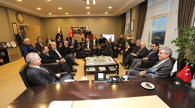 Sakarya Ticaret ve Sanayi Odası Yönetim Kurulu Başkanı A. Akgün Altuğ, sakarya Büyükşehir Belediye Başkan Adayı Ekrem Yüce, AKP İl Başkanvekili Erkut Aşoğlu ve çalışma arkadaşlarından oluşan heyeti makamında ağırladı.Söz konusu ziyaretten duyduğu memnuniyeti dile getiren Başkan Akgün Altuğ, Ak Parti Büyükşehir Belediye Başkan Adayı ekrem yüce çıktığı hizmet yolculuğunda başarılar diledi.SATSO Yönetim Kurulu Üyelerinin de bulunduğu ziyarette konuşan Başkan Altuğ “Sakarya’ya hizmet etmek şehirdeki oda ve borsaların üyeleri ve hitap ettiği kesim itibariyle hem istihdam hem nüfus hem de ekonomiye katkısı anlamında büyük bir güç oluşturuyor. BU güç biz meslek örgütlerine aynı zamanda sosyal bir sorumluluk da veriyor. Sivil toplum kuruluşu kimliğimizi güçlendiriyor. Bu yüzden bu şehrin her derdi bizim derdimizdir. Beraber hizmet edeceğimiz kurumlarımızın yol arkadaşlığında şehrimizi yukarılara çıkarmak için her konuda fikrimizi beyan ediyoruz ve etmeye de devam edeceğiz. Son 20 yılda hızla gelişen ve nüfusu artan bir il olarak gelecek planlarımızı hazırlamalı yol haritamızı sağlam bir şekilde oluşturmalıyız. Bu anlamda gündeme getirdiğimiz Sakarya Ana Stratejik Planı’nı tüm kurumlarımızın katılımı ve görüş birliği ile oluşturarak hedeflerimizi belirlemeliyiz. Hepimiz gelecek yılların öngörüsü ve sorumluluğunun bilincinde elimizi taşın altına koymalıyız. Hep birlikte bu şehre en iyi hizmeti vermeyi arzuluyoruz.” diye konuştu.Ak Parti Büyükşehir Belediye Başkan Adayı Ekrem Yüce de şehrin gelişimi ve sosyo ekonomik dokusunda iş dünyasının katkısına dikkat çekerek “İş dünyamızın ne kadar saygın ve önemli bir sorumluluğu üstlendiklerinin bilincindeyiz. İş dünyası bizim hizmet anlayışımızın önemli bir paydaşı ve bu şehrin sahipleridir.” dedi.Yüce konuşmasının devamında bir şehrin farkındalığı ve markası üç ana eksen de belirlenebilir. Bunlar; spor, bilim ve doğal zenginliklerindeki markalaşmadır. Bu temelden yola çıkarak diğer sektörler ve alanlar de gelişim gösterir. Bilim sanayiyi, sanayi tüm sektörleri destekler; üniversitelerimiz bu açıdan çok önemlidir. Bilim yoksa bir il payidar olamaz. Tarım ürünleri, turizm değerleri gibi doğal zenginlikleri de bir kentin olmazsa olmazlarıdır. Biz tarım alanlarımız ve turizm potansiyeli bakımından da zengin bir bölgeyiz. Sportif faaliyetlerle markalaşan şehirler söz konusu spor dallarında bir şehrin adını dünyaya duyurabilir. Bizim Sakarya spor gibi, Sakarya basketbol takımımız da bizleri gururlandıran başarılara imza attı. 1. Ligde olan Sakarya Basketbol takımını önemsiyoruz. Ligde önemli bir yerde Süperlig’deki başarısını takdirle karşılıyor, devamlılığı için hep birlikte gayret edelim istiyorum.Tüm bu değerler elimizdeyken markalaşmamamız için hiçbir engelimiz yok. Yeter ki hep birlikte bu potansiyeli aktif bir şekilde değerlendirebilelim. Sakarya’da sürdürülebilir uygulanabilir mantıklı projelere kaynak oluşturacağımıza inanıyorum.” diye konuştu.