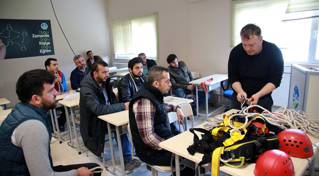 Sakarya Büyükşehir Belediyesi Su ve Kanalizasyon İdaresi (SASKİ) tarafından İş Sağlığı ve Güvenliği’ne yönelik olarak düzenlenen eğitimler devam ediyor. 25786 Sayılı Yapı İşlerinde İş Sağlığı ve Güvenliği Yönetmeliği ve 28695 Sayılı Kişisel Koruyucu Donanımların İşyerlerinde Kullanılması Hakkında Yönetmelik gereğince Yüksekte Çalışma Eğitimi düzenlediklerini söyleyen SASKİ İnsan Kaynakları ve Eğitim Dairesi Başkanı Zeki Koç, “8 personelimiz ilk olarak Eğitim Salonumuzda konuya ilişkin teorik bilgileri aldılar. Daha sonra ise alanında uzman eğitmen gözetiminde SASKİ Haberleşme Kulesi’nde uygulamalı eğitim gerçekleştirildi. Toplam 8 saat süren eğitimle yüksekte çalışmanın tehlikeleri, düşmenin dinamiği, koruyucu donanımların kullanılması, geçici dikey ve yatay yaşam hattı oluşturma, yaşam hatlarında lanyard ile çalışma ve ankraj noktaları belirleme gibi konularda eğitim gerçekleştirildi. Bu eğitimle amacımız yüksekte çalışan personellerimizi güvenli bir biçimde çalışmalarını sağlayacak bilgiler ile donatmak ve kaza anlarında gerekli kurtarma görevlerini yerine getirilebilecek seviyeye ulaşmalarını sağlamak” diye konuştu.