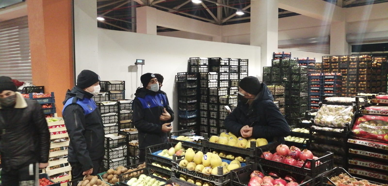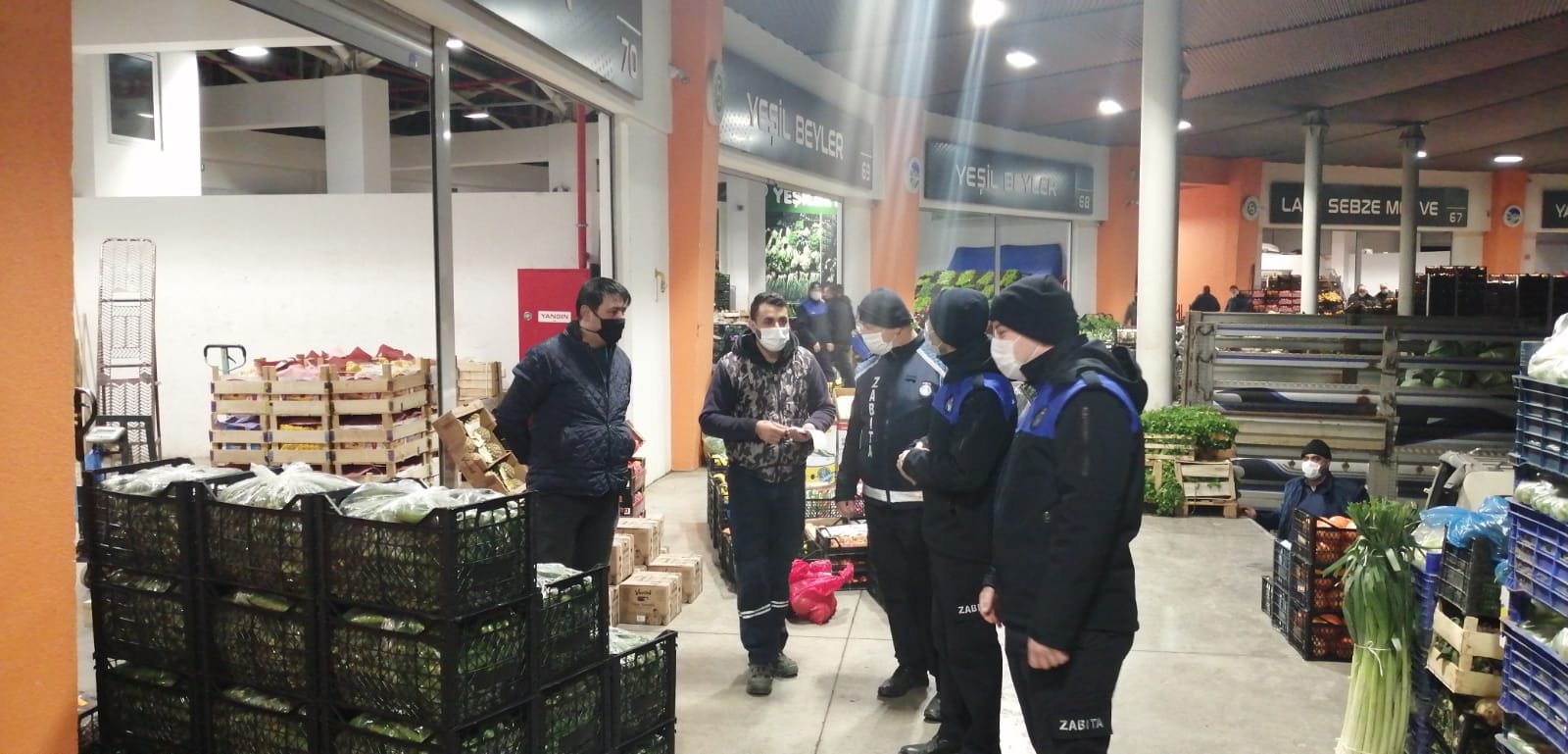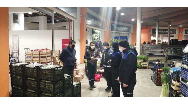 Büyükşehir Belediyesi zabıta ekipleri Koronavirüs ile mücadele kapsamında denetim çalışmalarına devam ediyor. Ekipler denetimler kapsamında Sakarya Sebze ve Meyve Hali Kompleksi'nde denetimlerini sürdürdü.