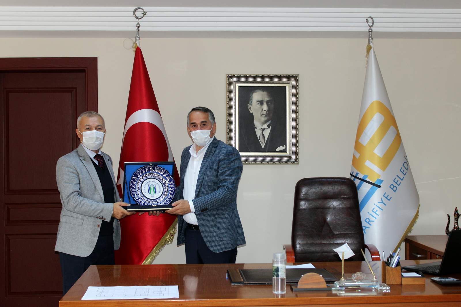 16 Ekim 2020 tarihinde Ak Parti Genel Başkan Yardımcısı ve Ak Parti Sakarya Milletvekili Ali İhsan Yavuz tarafından açılışı yapılan, Sakarya Uygulamalı Bilimler Üniversitesi (SUBÜ) ziraat Fakültesi Dekanı Prof. Dr. Taki Demir ve Dr. Öğretim Üyesi Hüseyin İrfan Balık, arifiye Belediye Başkanı İsmail Karakullukçu’yu makamında ziyaret etti.Samimi bir ortamda geçen ziyarette; ziraat fakültesi Dekanı Prof. Dr. Taki Demir” Sayın Başkanım sizlerin yardımı ve desteğiyle çok kısa bir süre içerisinde Üniversitemize çok güzel bir fakülte binası kazandırdık. Arifiye’de bulunan Mısır Araştırma Enstitüsü ile işbirliği yaparak, fakültemizde yetişecek öğrencilerimizi uygulama alanlarından yararlandıracağız. Ayıca Geyve ve Pamukova’da da yeni uygulama alanları oluşturacağız. Amacımız, öğrencilerimize teorik öğrenimin yanında bol bol uygulama yaptırarak, Ülkemize ve Türk tarımına nitelikli ziraat mühendisleri kazandırmak. Fakülte binasını bizlere kazandırılmasında Arifiye Belediye Başkanımız Sayın; İsmail Karakullukçu’ya Sosyal Hizmetler İl Müdürümüze, Ak Parti Genel Başkan Yardımcımız Sayın; Ali İhsan Yavuz’a ve emeği geçen geçen herkese teşekkür ediyorum” dedi.Başkan İsmail Karakullukçu da yaptığı açıklamada; ”Sayın Dekanım ve hocamızın nazik ziyareti bizleri ziyadesiyle memnun etti. Evet, Arifiyemiz ilimizin sanayi kenti. Ama aynı zamanda çok verimli topraklara sahip yer. Dolayısıyla birçok tarım ürünü yetiştirilen bir yer. Sapanca gölü ve İl Ormanının oluşturduğu sera etkisi sayesinde, çok kaliteli Dış Mekân Süs Bitkilerinin yetiştirildiği bir yer. Bu gün Yalova’dan sonra, ülkemizin ilk akla gelen üretim merkezi konumundayız. Bunun yanında Arifiye’miz Cumhuriyetin ilk yıllarında kurulan Köy Enstitüsü ve diğer okulların sayesinde eğitim üssü konumunda. Bu özelliğini pekiştirmek için, benden önceki Belediye başkanlarımızın çalışma programında olduğu gibi biz de Üniversitemizin bir bölümünü ilçemize kazandırmak için çalışma yaptık. Önce Arifiye Meslek Yüksekokulunu, şimdi ise, Ziraat Fakültemizi ilçemize kazandırdık. Bu çalışmalarımız sırasında başta Ak Parti Genel Başkan Yardımcımız Sayın Ali İhsan Yavuz’a, Sakarya Üniversitesi ve Sakarya Uygulamalı Bilimler Üniversitesi Rektörümüze, Sosyal Hizmetler İl Müdürümüze, siz değerli hocalarımıza ve emeği geçen herkese çok çok teşekkür ediyorum. Arifiye Belediyesi olarak, Okulun her türlü ihtiyacında, hizmetinizdeyiz sayın hocam.” dedi.Ziyaret sonunda Ziraat Fakültesi Dekanı Prof. Dr. Taki Demir Başkan Karakulluçu’ya verdiği destek nedeniyle teşekkür ederek, plaket takdim etti.